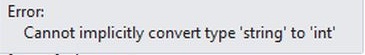 Cannot implicitly convert type ‘string’ to ‘System.DateTime’ Cannot implicitly convert type ‘decimal’ to ‘bool’