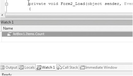 Bu senaryoyu gerçekleştirmek için Visual Studio birçok araç sunsa da en kullanışlısı watch penceresidir. Watch penceresi yazılımcıya takip edeceği değişken veya kontrollerin o anki değerini, adını ve veri tipini gösterir.  Watch penceresi, uygulama sadece debug modda ise görülür.Watch penceresindeki satırlara izlemek istediğiniz değişkenleri, kontrolleri veya kontrollerin özelliklerini yazabilirsiniz.